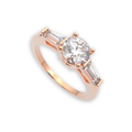 Three-stone diamond engagement ring set with one round cut diamond and two tapers on the side